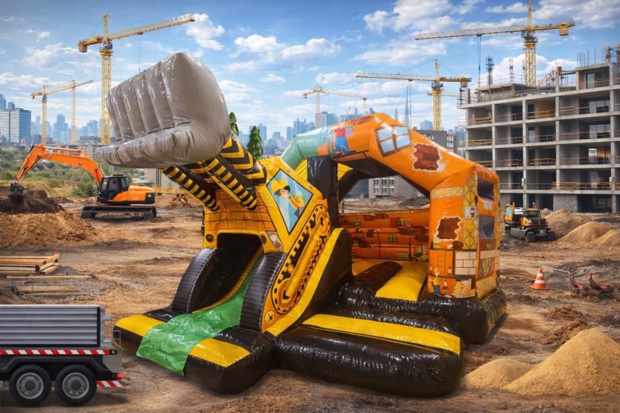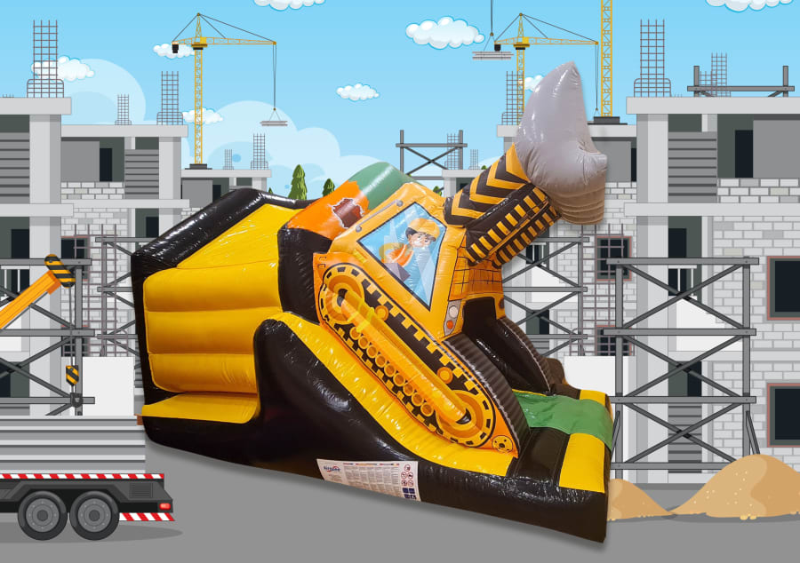 Brilliant castle with a slide in a Digger theme